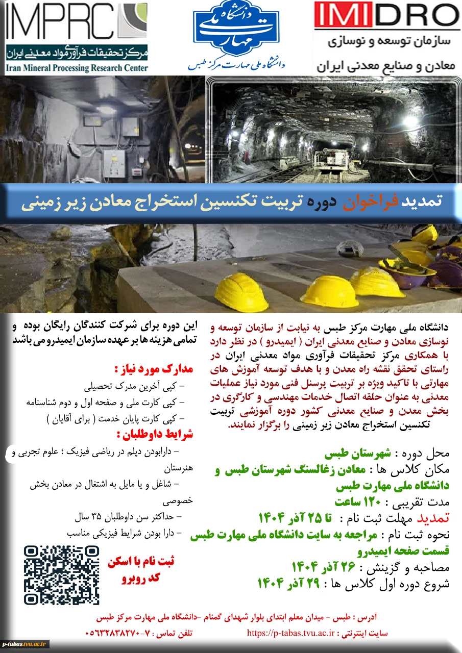 امتیاز دهید : فراخوان ثبت نام دوره آموزشی تربیت تکنسین مهارتی استخراج معادن زیرزمینی 2 چهارشنبه 19 آذر 1404 ساعت 14:34
